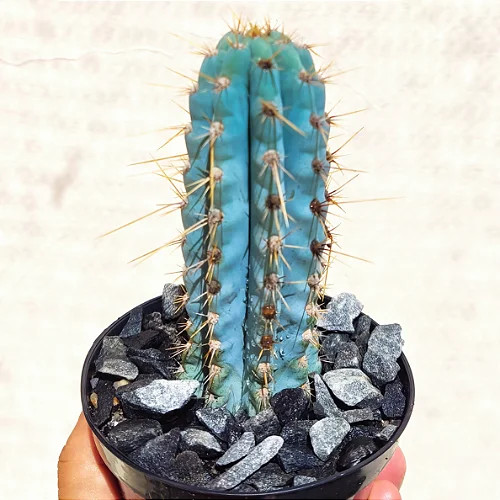 Com seu tom azul metálico e porte colunar elegante, o Pilosocereus azureus é uma joia rara da flora brasileira. Originário de regiões áridas e rochosas, esse cacto encanta pela coloração incomum do caule, que varia entre azul-celeste e azul-prateado, criando um contraste vibrante com seus espinhos amarelos.